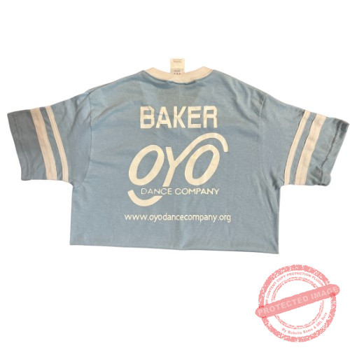Blue t-shirt with Corey Baker’s image on the front, his name and Oyo Dance Company’s logo and website on the reverse.