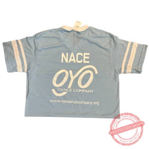 Blue t-shirt with Rachel Nace’s image on the front, her name and Oyo Dance Company’s logo and website on the reverse.